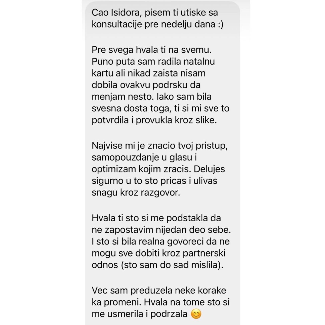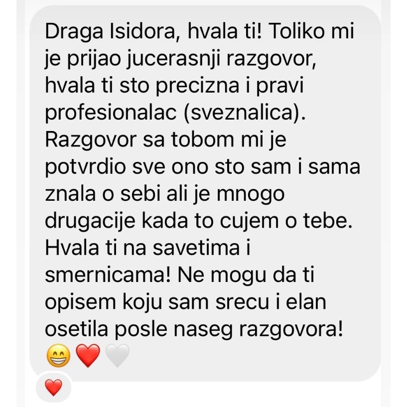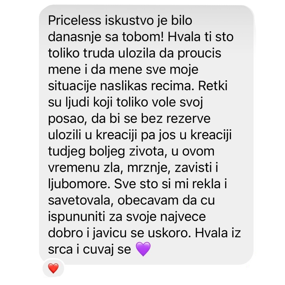 Postoje paralelne realnosti. Postoje drugačiji svetovi koje mi stvaramo onog momenta kad krenemo na ovo unutrašnje putovanje. Vodiću vas kroz sve te puteve, prolaziti sa vama kroz sve te teže i lakše lekcije i pokazati kako je moguće drugačije, a da duša konačno bude slobodna da živi to najbolje. Individualne konsultacije i mentorski program deo su moje priče koja je tu je delim sa svetom.