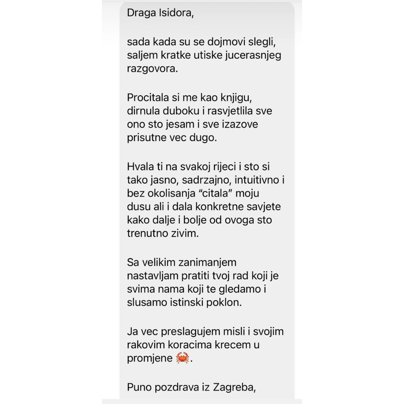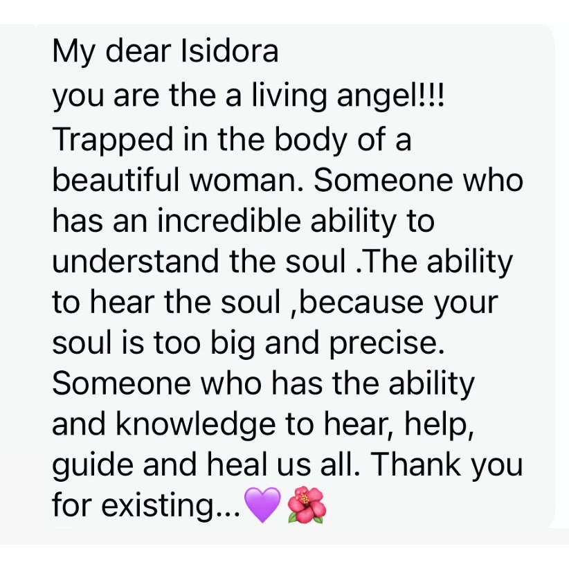 Ime mi je Isidora. Zovu me „Čarobnica“. Tu sam da vodim svoje ljude putevima kojima se retko ide, onima koji idu ka unutra, ka centru srca i centru duše. Duša ima svoje puteve kojima mora da prodje da bi porasla, savladala lekcije i konačno živela kao SLOBODNA i PROBUDJENA – Free Soul Awakening.